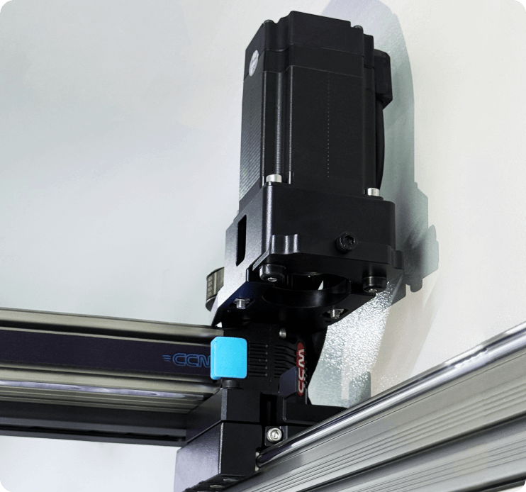Präzise gefertigte Stahl-Monocoque-Konstruktion minimiert Vibration. Verstärkte Linearschienen und Servomotoren garantieren Maßhaltigkeit, ruhige Bewegungen und zuverlässige Industriequalität bei Meter-Bauteilen.
